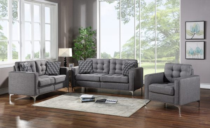 GREY, BLACK LINEN SOFA/LOVE/CHAIR