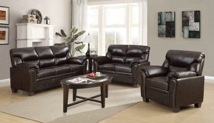 BROWN, BLACK PU SOFA/LOVE/CHAIR