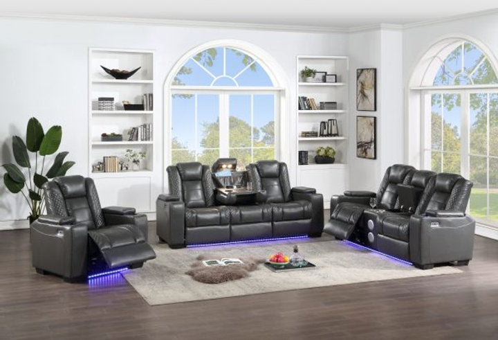 GREY POWER LED RECLINING SOFA/LOVE/RECLINER