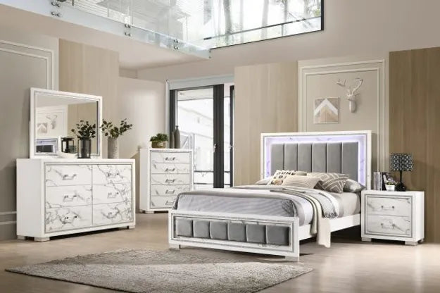 FULL: 57 X 78 X 54 QUEEN: 64 X 86 X 59 KING: 80 X 86 X 59 DRESSER: 63 X 17 X 39 CHEST: 35 X 17 X 49 NIGHTSTAND: 24 X 17 X 24 MIRROR: 47 X 1 X 35