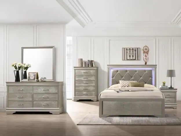 FULL: 57 X 78 X 54 QUEEN: 63 X 83 X 54 KING: 79 X 83 X 54 TWIN: 42 X 78 X 54 DRESSER: 58 X 16 X 33 CHEST: 32 X 16 X 48 NIGHTSTAND: 22 X 16 X 24 MIRROR: 38 X 1 X 38