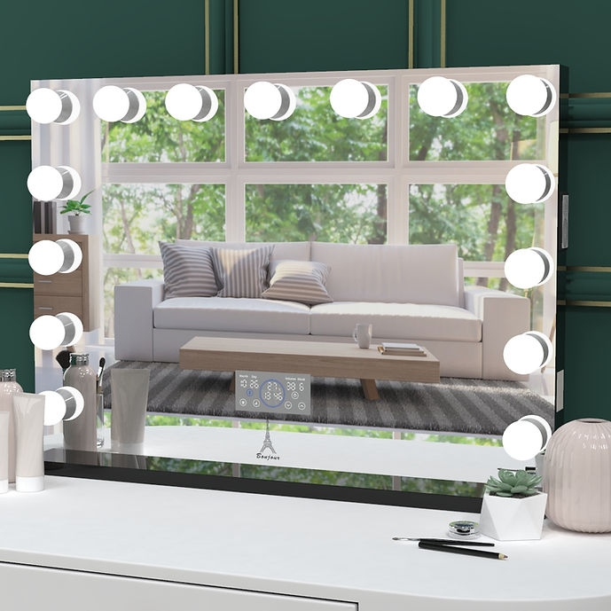 BONJOUR MIRROR-2 BLACK Dimensions: L 31.4" x W 2.3" x H 26.4"  Description: Mirror & LED Lights Bulbs...