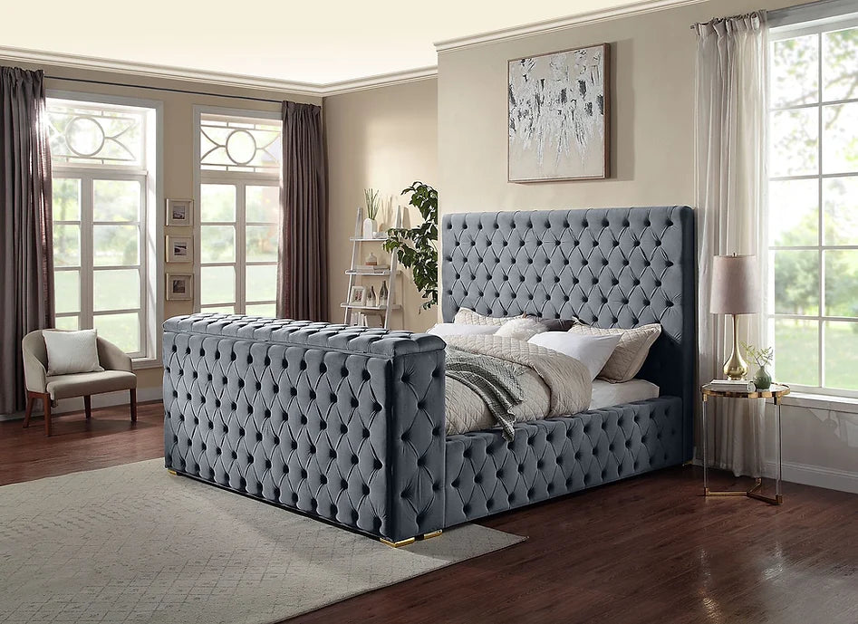 -Velvet squared bed with upholstered lid