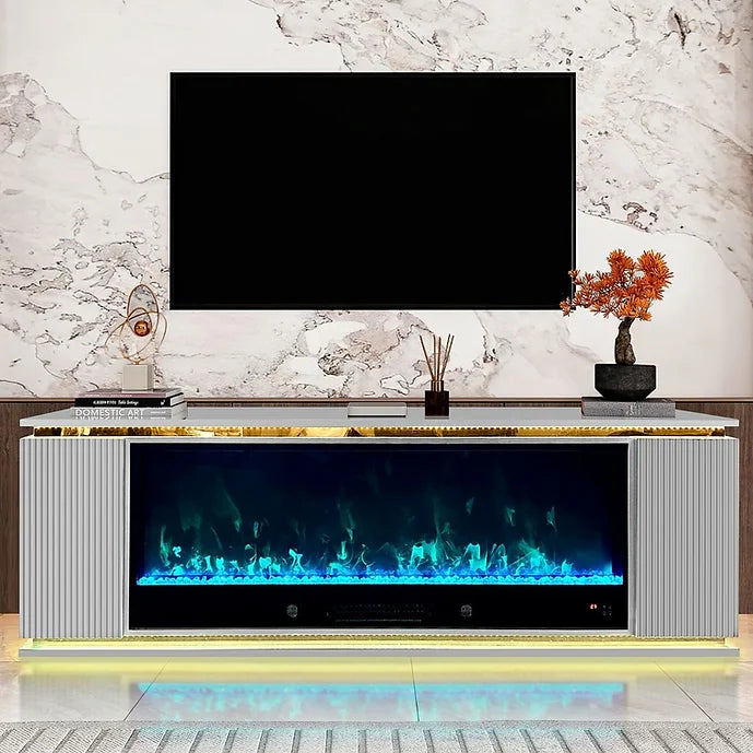 -FIREPLACE WITH GREY AND GOLD TRIM