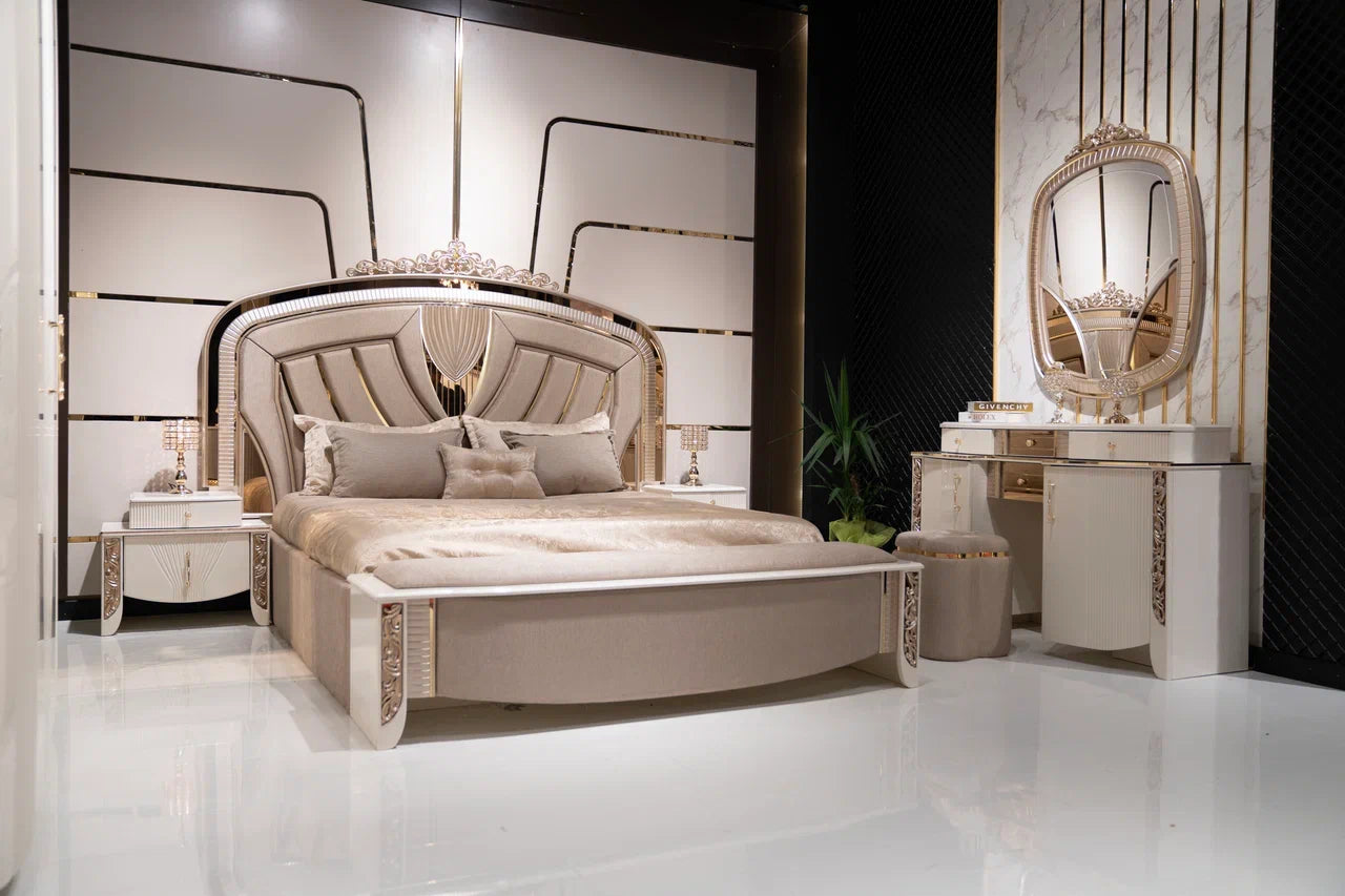 Spice up your bedroom with the VALENCIA Bedroom Set! This 7-piece set includes everything you need to create a stylish, dreamy bedroom. Say goodbye to boring furniture and hello to a bedroom that will make you want to stay in bed all day (and night)!