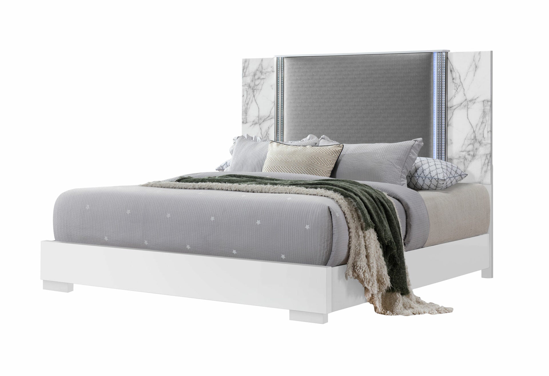 Introducing the Rosa Furniture USA Ylime Collection - a luxurious addition to any bedroom. With its sleek deco modern design, this collection is accentuated by opulent chrome detailing and LED accent lighting. The real standout feature is the LED accents, providing an air of grandeur and refinement. Complete your bedroom with the available vanity and stool for the ultimate in extravagance.